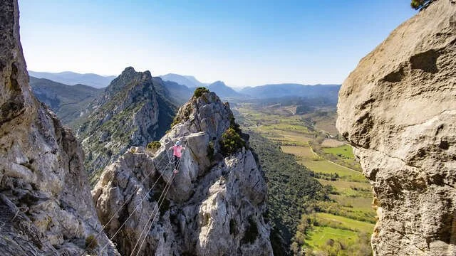 Spectacular views over the Agly Valley, Mediterranean, and nearby peaks such as Canigou—rare for a beginner via ferrata.
