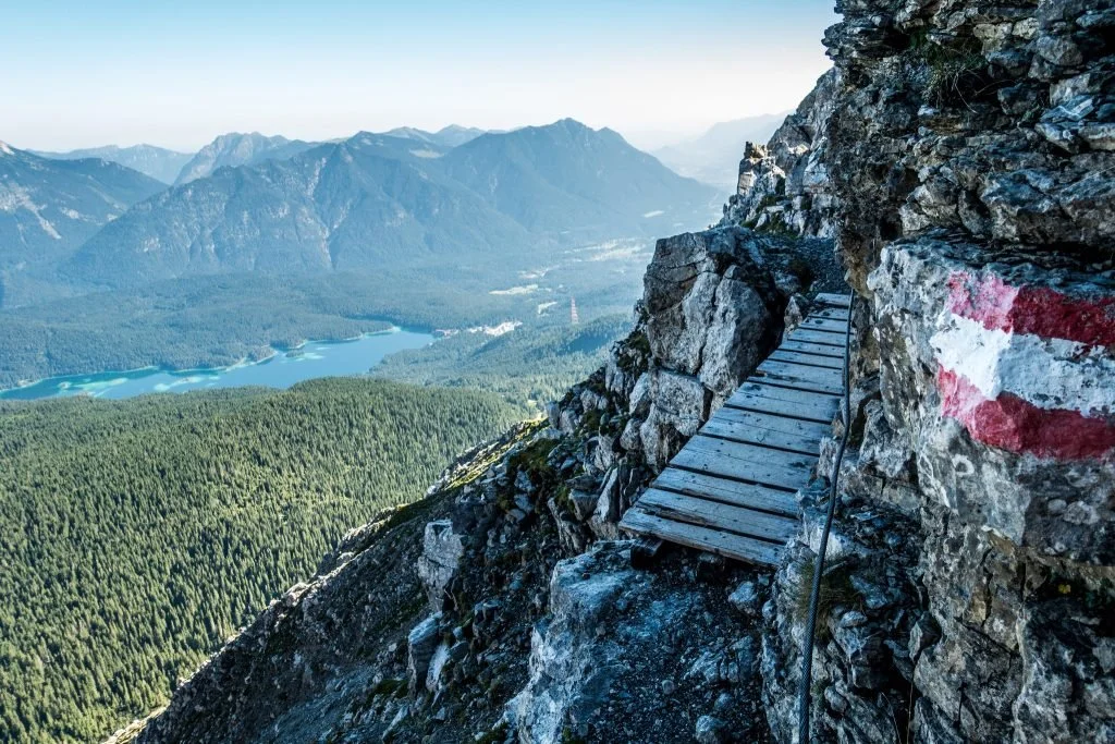 The Via Ferrata Stopselzieher is one of Tyrol’s classic short but vertical routes, rising directly toward the summit of the Kofel above Oberammergau. Compact, scenic, and technically engaging, it provides a memorable alpine experience without requiring a full-day commitment. Despite its modest length, the route features exposed sections, steep ladders, and continuous cable protection that demand confidence and good movement efficiency. Its combination of accessibility and dramatic terrain has made it a favored objective for climbers seeking a fast, rewarding via ferrata in the Bavarian Alps.