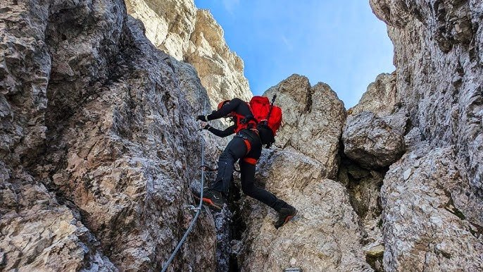 This via ferrata is recommended only for climbers with experience on advanced routes. Its D/D+ grading reflects several sustained vertical passages, strenuous movements, and prolonged exposure. Climbers must be confident in using via ferrata equipment, maintaining balance on narrow ledges, and moving efficiently over steep terrain. Alpine awareness is essential, including understanding weather patterns, evaluating rock conditions, and managing fatigue over a long day.
