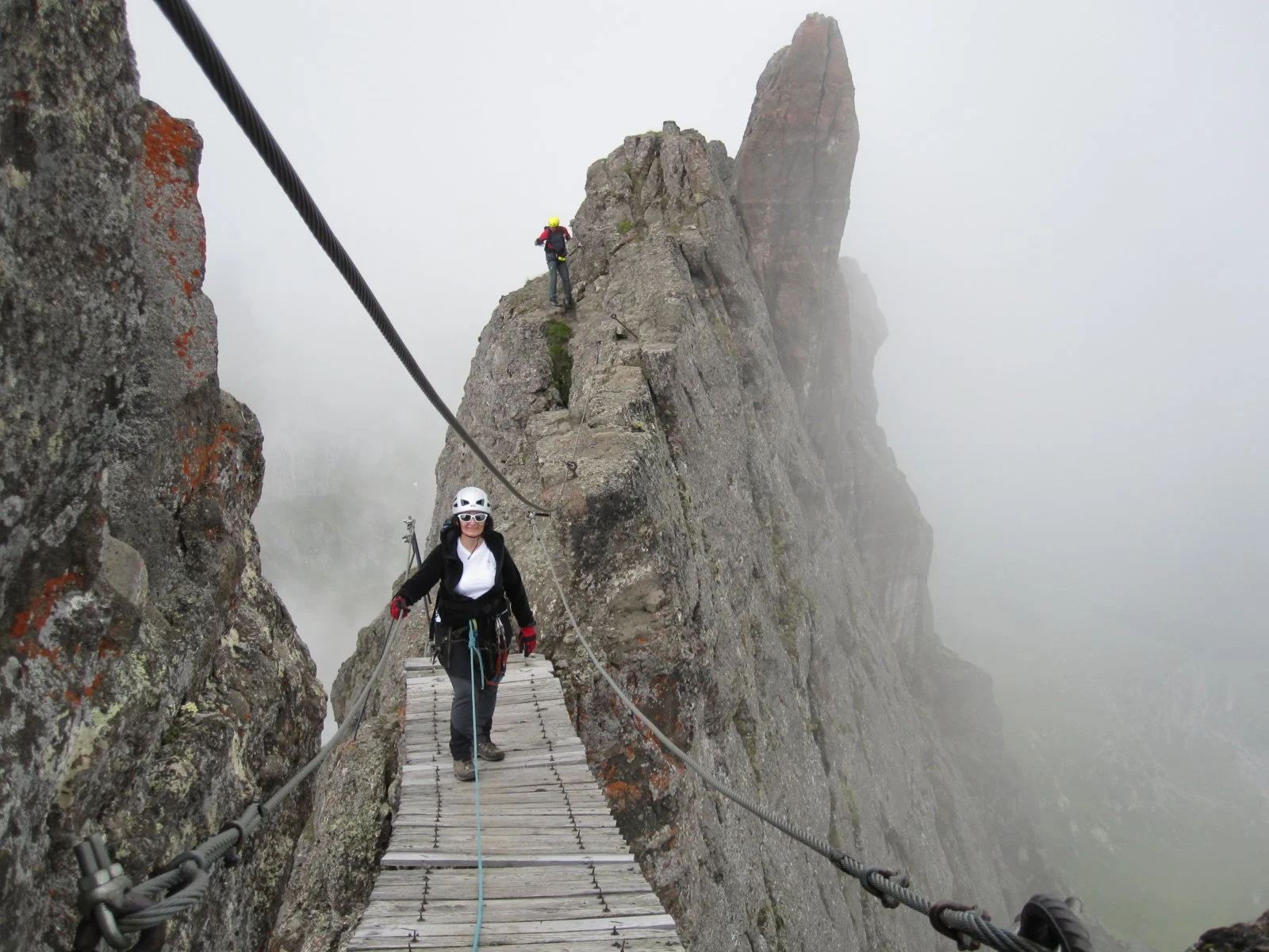 Highly exposed and athletic sections that appeal to advanced ferrata climbers