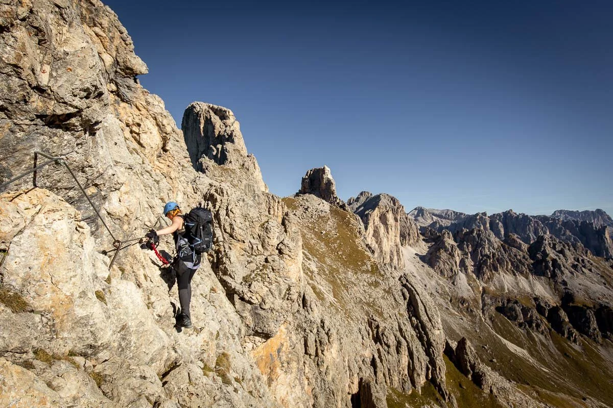 Via Ferrata Roda de Vaèl combines the essential elements that make Dolomite ferratas world-renowned: dramatic scenery, sustained but achievable climbing, and a strong sense of alpine immersion. It’s adventurous without being extreme, scenic without requiring technical mountaineering, and long enough to feel like a true mountain journey. For climbers who wish to experience the authentic character of the Catinaccio group, this route is an exceptional choice.