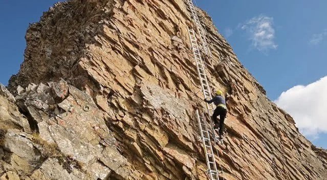 This is a moderately difficult via ferrata, rated around K2-3 / B-C in via ferrata grading systems. Conditions on the route include steep ladders, exposure, and ridge walking.
